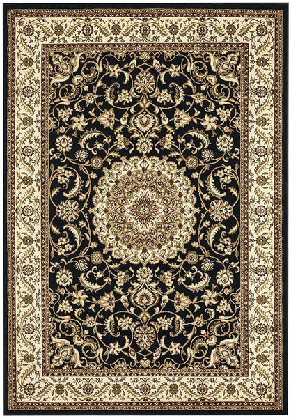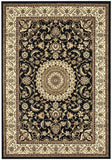 Sydney Collection Medallion Rug Black with Ivory Border