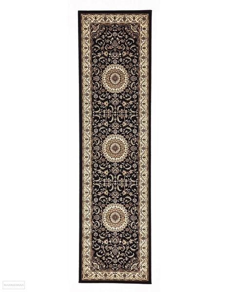 Sydney Medallion Runner Black with Ivory Border Runner Rug
