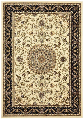 Sydney Collection Classic Rug White with Beige Border