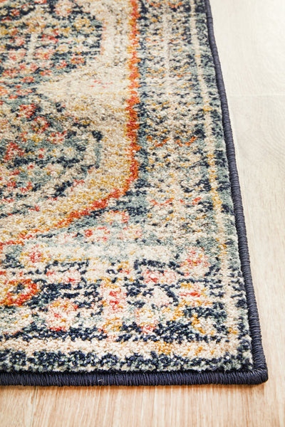 Colorful and culture centric, this Legacy Navy rug highlights a multicolored array of interweaving diamonds with ornamental figures plugged inside and along the edges. This fantastic piece heirlooms are power loomed using soft yet durable synthetic yarns and finished with artistic fringe, enriching living areas with bohemian warmth and eclectic style. These rugs offer a terrific modern look to any decor.