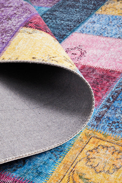 Looking for something cheerful and vibrant? Look no further, Illusions is sure to make a statement with its head-turning hues and bold printed patchwork design. Bursting with character and flare, this vintage inspired design would pair wonderfully in a bohemian, contemporary, or tribal inspired interior.