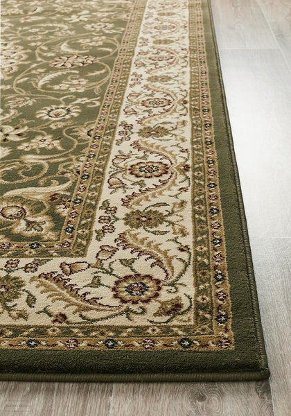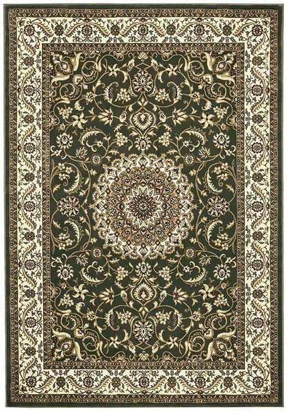 Sydney Collection Medallion Rug Green with Ivory Border